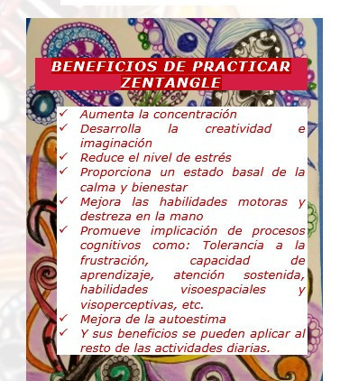 Es un sencillo método de relajación, meditación, dibujo y creación artística basado en patrones estructurados y repetitivos llamados "enredos" o "tangles", que se componen de 5 trazos básicos de los cuales se crean hermosas obras de Arte.